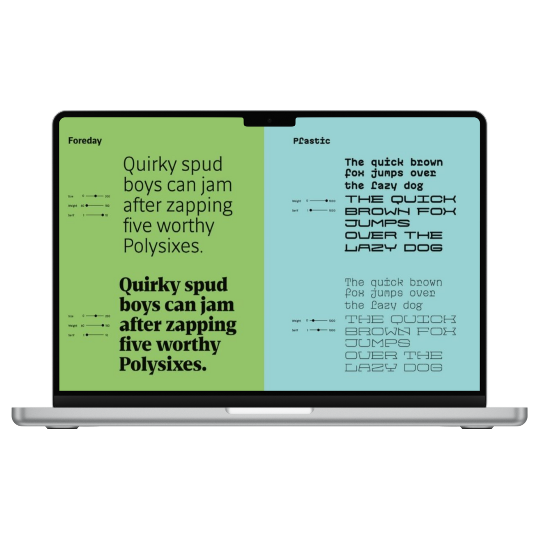 Bei Variablen Fonts werden die einzelnen Schriftschnitte nicht in eigene Dateien gespeichert sondern mit verschiedenen Achsen festgelegt. So kann die StichstĂ€rke, die Schriftbreite, die Neigung, die optische GröĂe und die Kursive flexibel verĂ€ndert werden. Hier sind der KreativitĂ€t aber keine Grenzen gesetzt. Es können auch Werte fĂŒr die Serifenform, den Kontrast oder Konturen vergeben werden. Variable Fonts haben auch den Vorteil, dass sie sich positiv auf die Ladezeit auswirken.